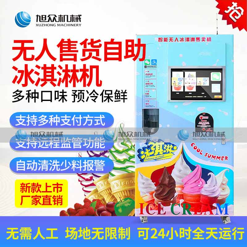 无人售货冰淇淋机, 人工成本越来越高,无人店、无人售卖机必将是一个趋势。简单而又重复的劳动(售卖)必将被智能无人替代。无人售货自助冰淇淋机支持多种支付方式,支持远程监管功能,支持预冷保鲜,支持多种口味混合,自动清洗少料报警。无需人工、场地无限制。