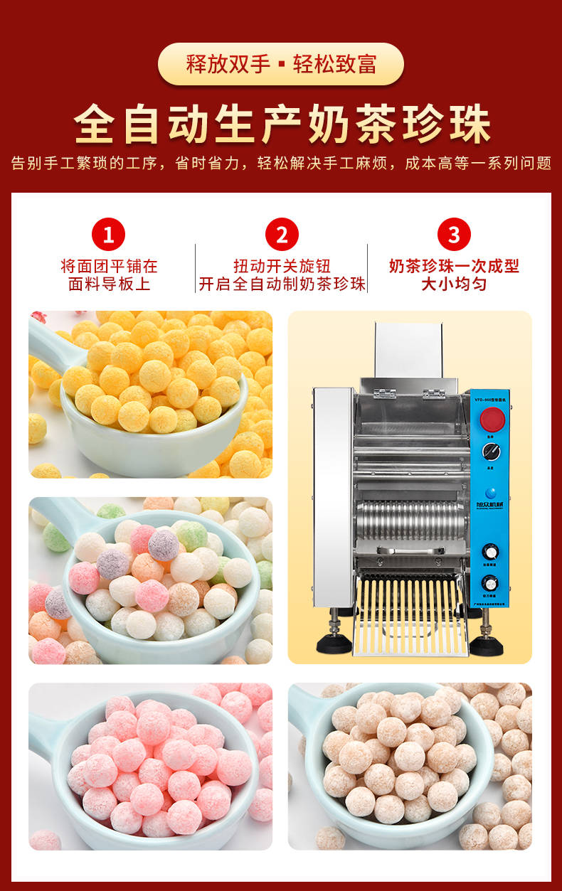 VFD-900珍珠奶茶机,奶茶店、甜品店可用。可生产奶茶珍珠,果蔬圆子,无馅汤圆,水晶汤圆,各种芋圆。不占空间、体积小、重量轻,桌面上的小奶茶珍珠机。告别手工繁琐的工序,省时省力,轻松解决手工麻烦,成本高等一小蝌蚪吧视频黄色版问题