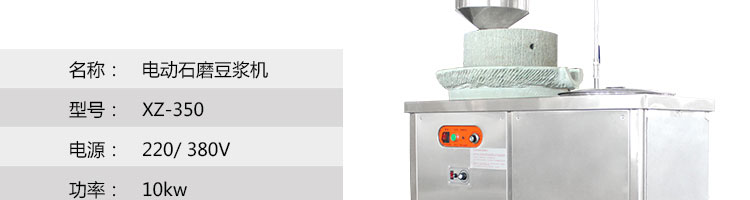 XZ-350型电动石磨豆浆机,适用于制作豆浆;豆浆还含有铁、钙等矿物质,尤其是其所含的钙,虽不及豆腐,但比其他任何乳类都高,非常适合于各种人群,包括老人、成年人和青少年等等。