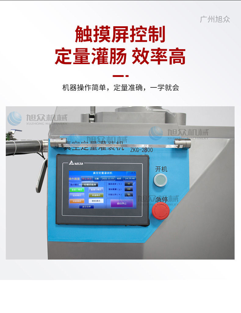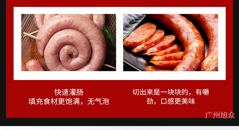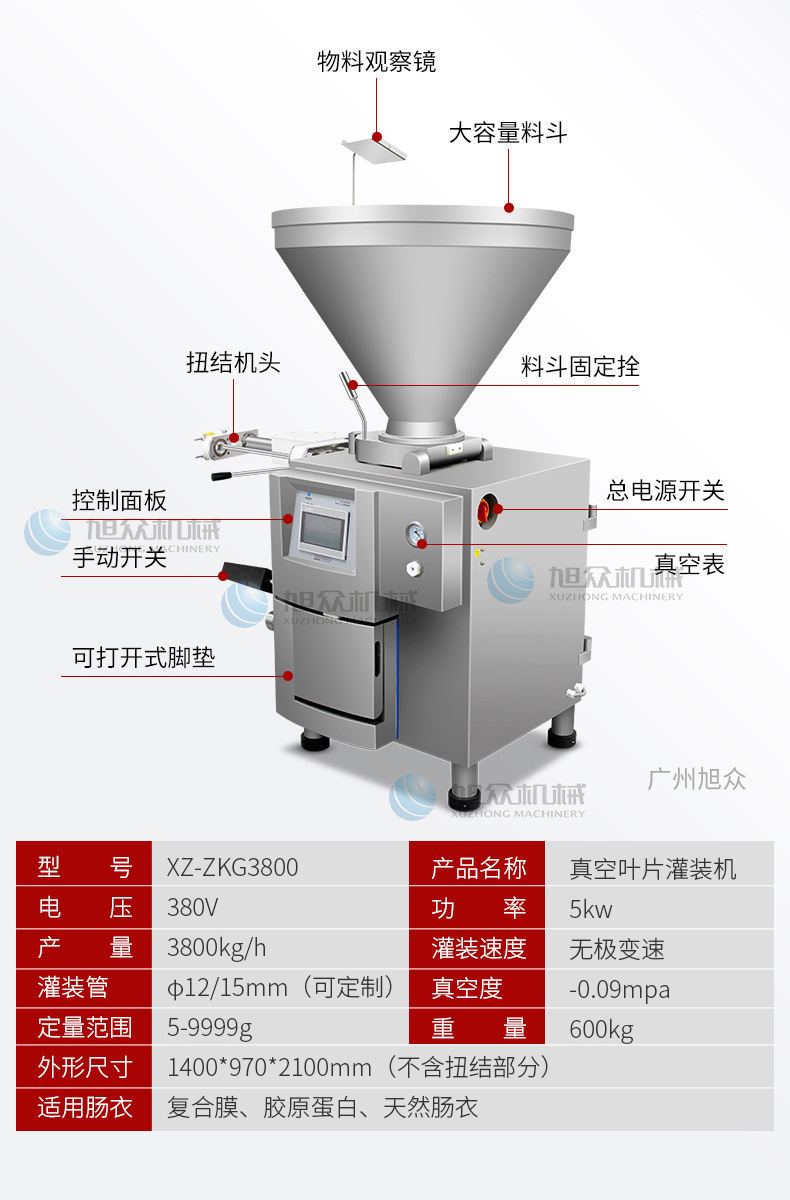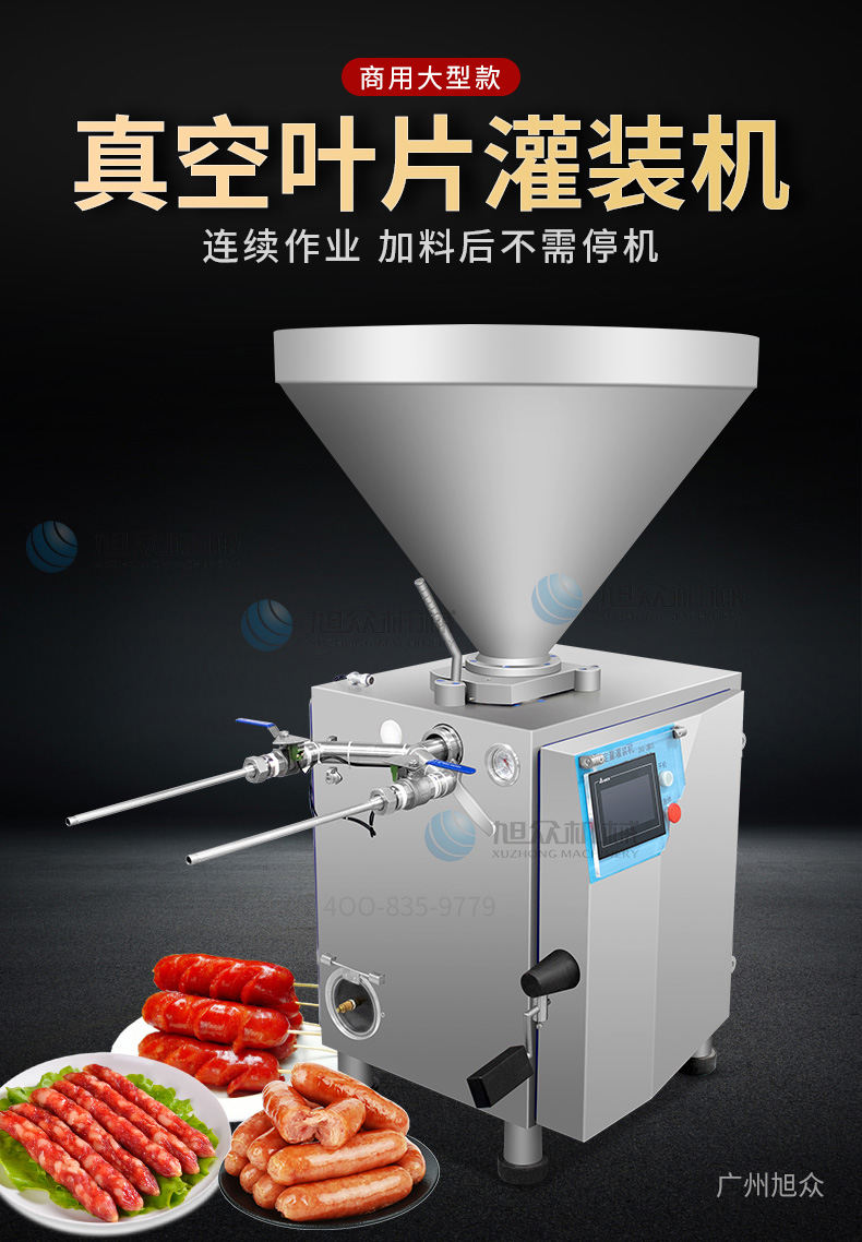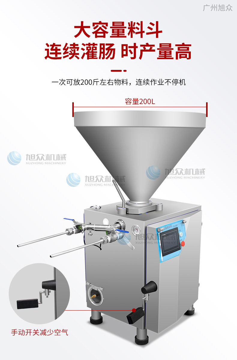 XZ-ZKG2800真空灌肠机,真空叶片灌装机连续作业加料后不需停机,可灌肉粒&肉糜实用性强灌各种肠可做烤肠、亲亲肠、广式腊肠、火锅肠等连续灌制长肠。