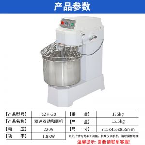 名称SZH-30型双速双动和面机 电源220/380V 功率1.8kw 产量 尺寸外形尺寸715*455*855mm 重量135kg 规格 其他
