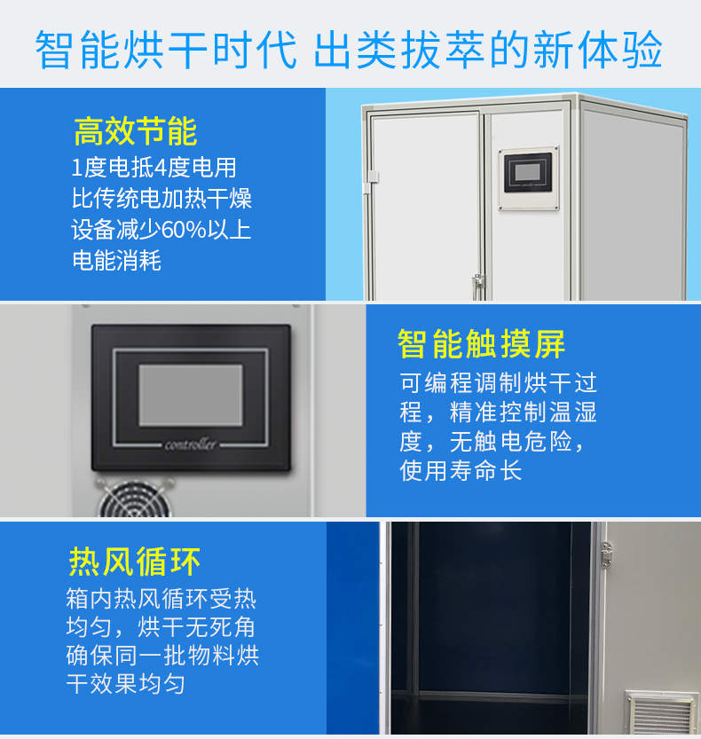 烘干抽湿一体机(带烘房),空气能移动烘干机,一次可烘300斤、家商用大容量、十区精准控温、多款型号可选。智能烘干时代出类拔萃的新体验