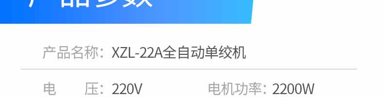 名称XZL-22A单绞机 电源220V 功率2200W 产量300-400KG/H 尺寸400*500*718MM 重量50KG 规格 其他
