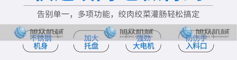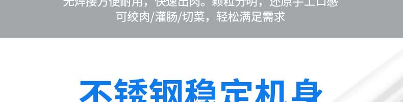 XZL-32A绞肉机,快速绞肉它做得到。告别单一,多项功能,绞肉绞菜灌肠轻松搞定。机身小巧使用便利,是厨房的理想之选绞馅无压力,适合餐厅,饭店,酒店等场所使用无焊接方便耐用,快速出肉。颗粒分明,还原手工口感可绞肉/灌肠/切菜,轻松满足需求。