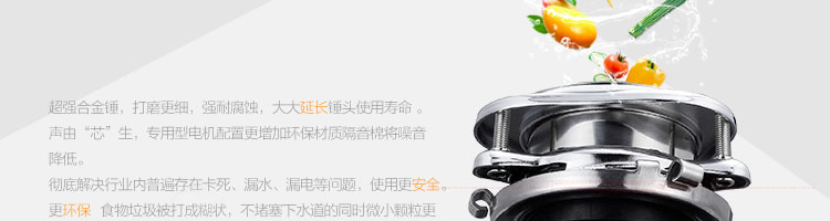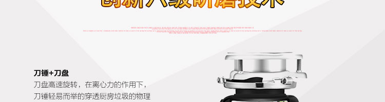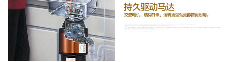 DCLQ38-厨房垃圾处理器,该机拥有独特的粉碎功能,使所有垃圾研磨吸毒真正低于3毫米,用户不用为管道堵塞而烦恼,粉碎后粗、细两种垃圾通过滤孔自动分离,成浆状的细垃圾随水流流入管道,粗的垃圾会稍停留在研磨仓继续粉碎,形成粉末状后,再随水流流入管道,客户可以放心使用。