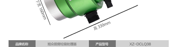 名称DCLQ38-厨房垃圾处理器 电源220V 功率0.38kw 产量 尺寸 重量5kg 规格 其他转速3000R/min,研磨仓容量1150ML