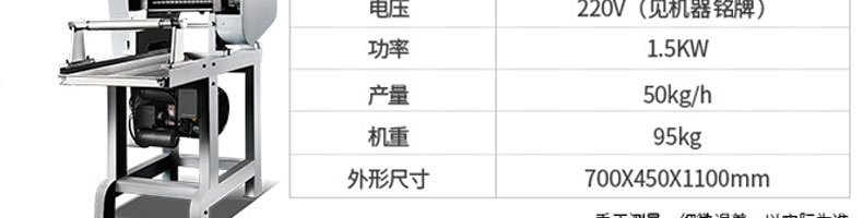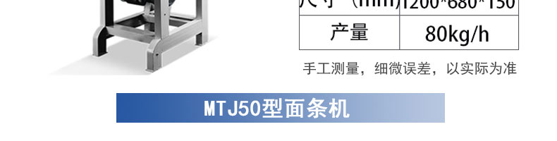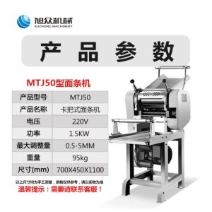 名称50型全自动压面面条机 电源220v 功率1.5kw 产量50kg/h 尺寸700*450*1100mm 重量95kg 规格 其他