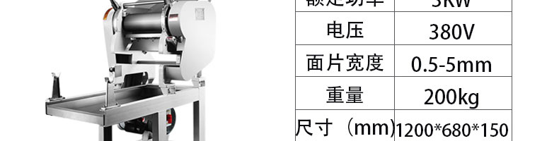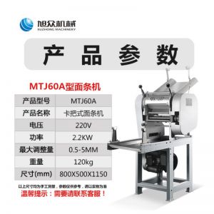 名称60型全自动压面面条机 电源220v 功率2.2kw 产量60kg/h 尺寸800*500*1150mm 重量120kg 规格 其他