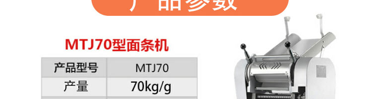 名称70型全自动压面面条机 电源380v 功率2.2kw 产量70kg/g 尺寸900*650*1200mm 重量170kg 规格 其他