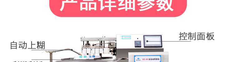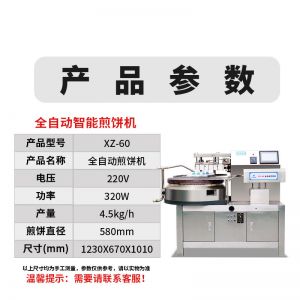 名称XZ-60全自动煎饼机 电源220v 功率320w 产量4.5kg/h 尺寸1230*670*1010mm 重量 规格 其他