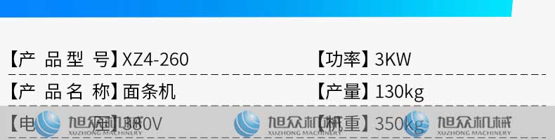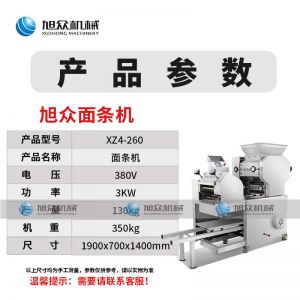 名称XZ4-260面条机 电源380V 功率3KW 产量130kg 尺寸900x700x1400mm 重量350kg 规格联系销售员 其他
