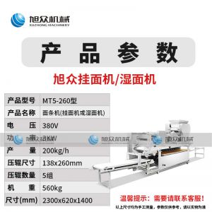 MT5-260型面条机,不同的面刀可以做出不同形状的面食做工细,实用又方便,出面均匀,成型漂亮,可咨洵客服了解详情