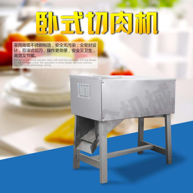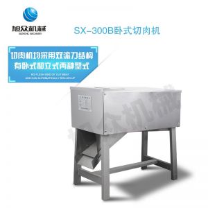 SX300B 卧式切肉机,卧式切肉机均采用双滚刀结构,有卧式和立式两种型式。各种款式切肉机原动力和刀梳、切肉部分的原理,结构大致相同,都具有结构紧凑,外形美观、操作方便、效率高、耗电小、清洁保养容易、安全卫生、切肉效果好等优点。