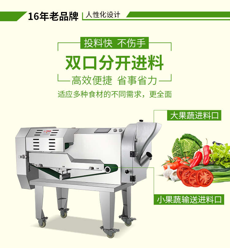XZ-690A型多功能切菜机,工作效率高,帮你省人工费。1小时可切600kg-1600kg/h,1台机器等于多名厨师同时为您工作。一机多用,可切瓜果、蔬菜、药材,刀片可进行更换,设计周到,结构合理,简单轻松应对。