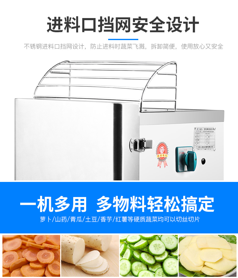 名称300型瓜果切丝切片机 电源220V 功率1.1KW 产量200-300kg 尺寸620X330X600mm 重量42kg 规格请资询销售员 其他