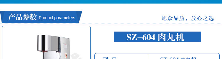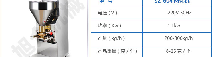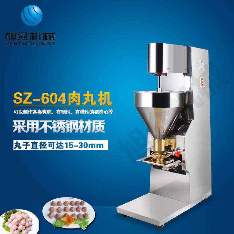 SZ-604肉丸成型机,肉丸成型机采用不锈钢材质,丸子直径可达15-35mm,可以制作各类爽脆,有韧性、有弹性的猪肉丸、鱼丸、牛肉丸、贡丸、鸡肉丸等