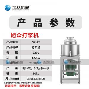 SZ-22快速打浆机,多功能打浆机用于打肉、配料、搅拌成浆,比手工打浆更精细,所产肉丸、鱼丸弹性好,色泽洁白。创业好帮手快速多功能适应厨房各种需求。