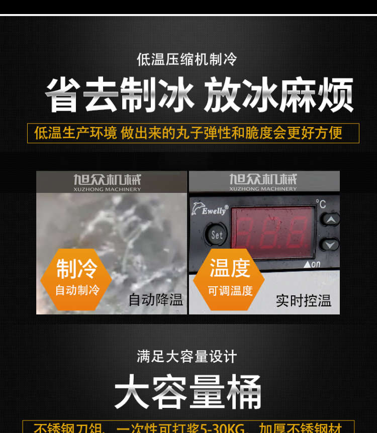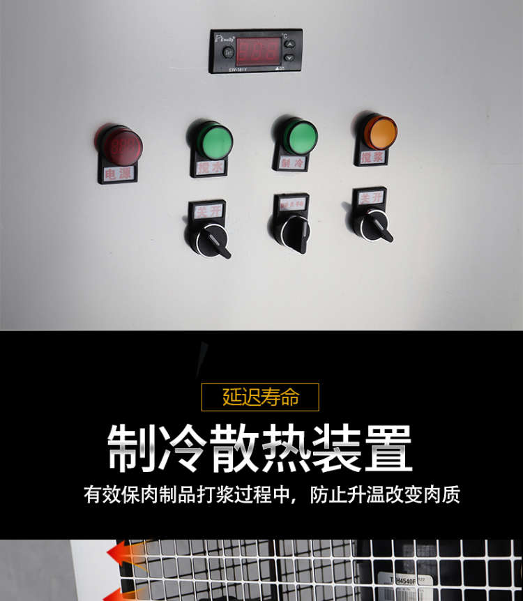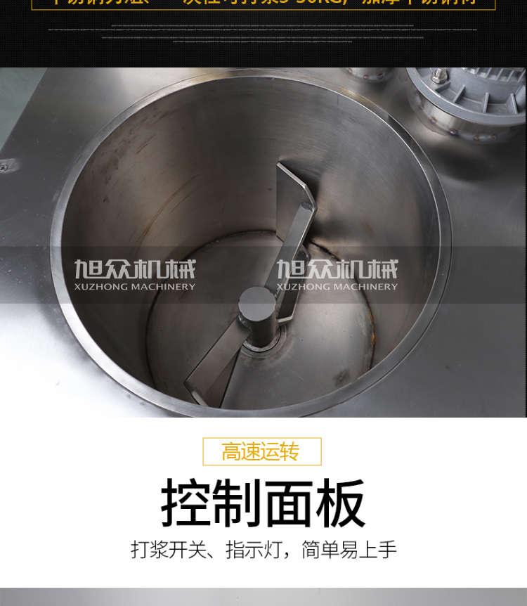 XZ-ZL-36制冷打浆机,满足大容量设计,大容量桶不锈钢刀俎、一次性可打浆530KG,加厚不锈钢材。