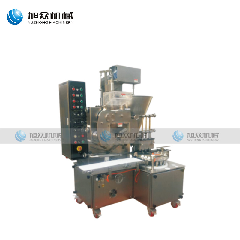 JGB-800S全自动三联烧麦机,独特的设计,只要将面及馆放进面斗和桶内开动机器就自动制成面帮并压海、拉皮、切、填充、成型并拔送到输送带上一次完成。烧卖馅量多寡及值皮海厚皆可调整,产品规格整齐。