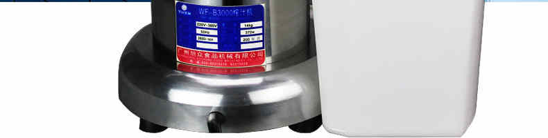 名称WF-B3000商用榨汁机 电源220V 功率0.37kw 产量转速:2800r/min 尺寸340*285*360 ?mm 重量15?kg 规格 其他
