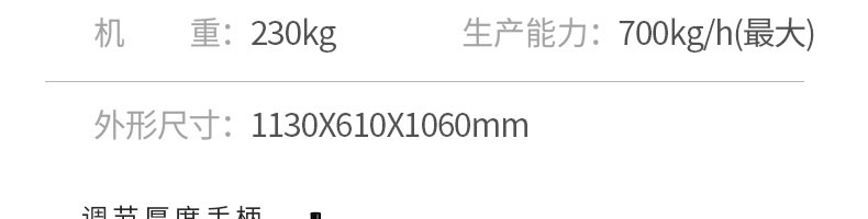 名称350A压面机-380v 电源380v 功率2.2kw 产量700kg/h 尺寸1130*610*1060mm 重量 规格压面宽度:<350mm 其他