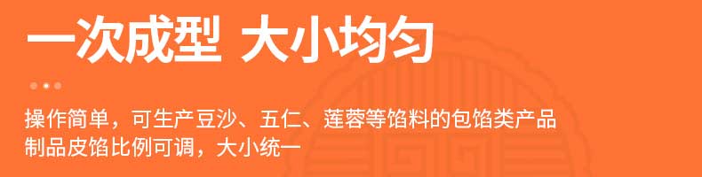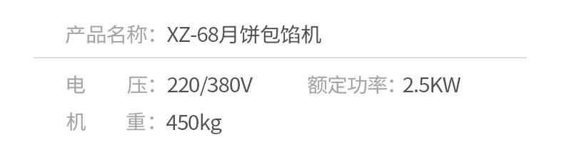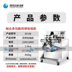 XZ-68月饼包馅机,一次成型大小均匀,操作简单,可生产豆沙、五仁、莲蓉等馅料的包馅类产品制品皮馅比例可调,大小统