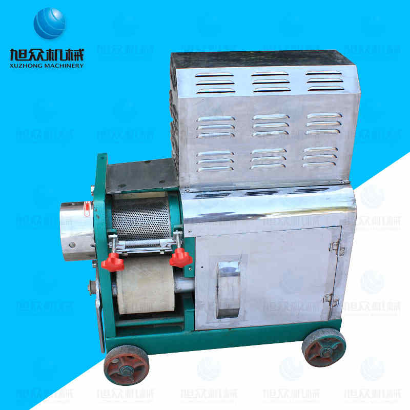 SZC鱼肉采肉机小蝌蚪吧视频黄色版, 本机装有采肉桶和压榨肉用的橡胶带,利用滚动的采肉桶和传动的橡胶带的相互压榨运动将鱼挤入采肉桶内,把鱼皮、鱼骨留在采肉桶外,由刮刀把它送出机外。