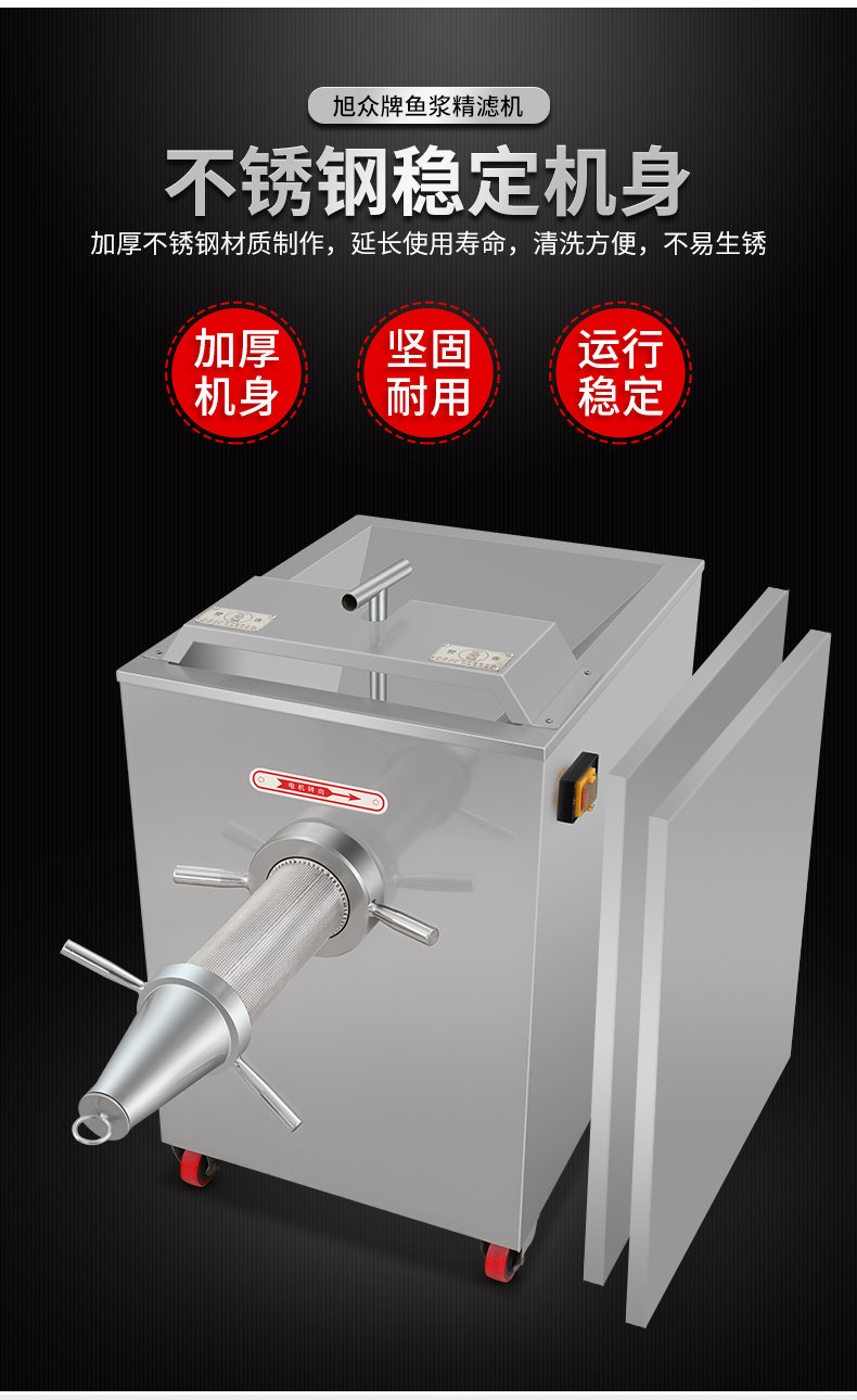 SZJ-300鱼浆精滤机,商用创业鱼浆精滤机,用于配套鱼肉采肉机进行鱼肉过滤杂质。节省人工开支,人工加工鱼浆,效率慢剔除鱼细骨,不干净,有了鱼浆精滤机,一人就可以很快制作多种鱼浆。
