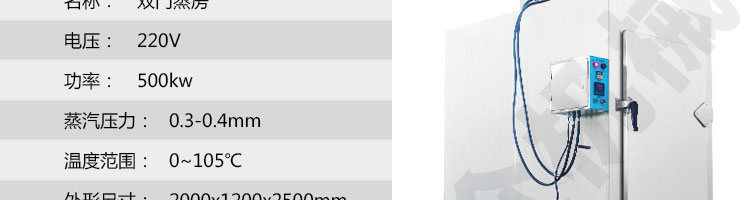 名称大型蒸汽蒸柜(蒸包子的机器)-双门 电源220v 功率500kw 产量 尺寸2000*1200*2500mm 重量 规格 其他